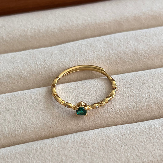 Emerald Green Open Ring – Adjustable 925 Sterling Silver Statement Ring